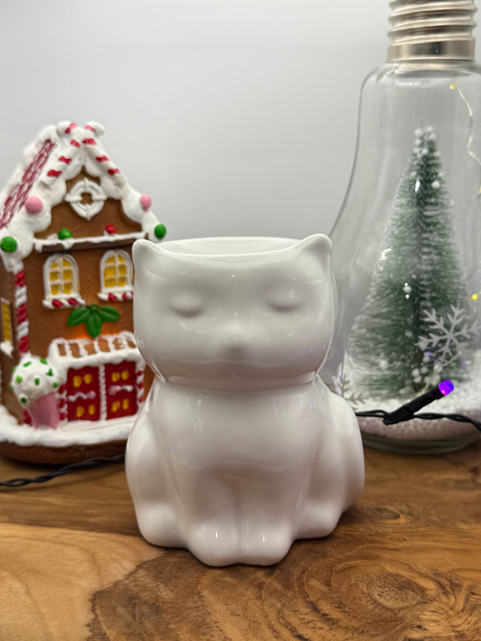Brûle-parfum chat blanc