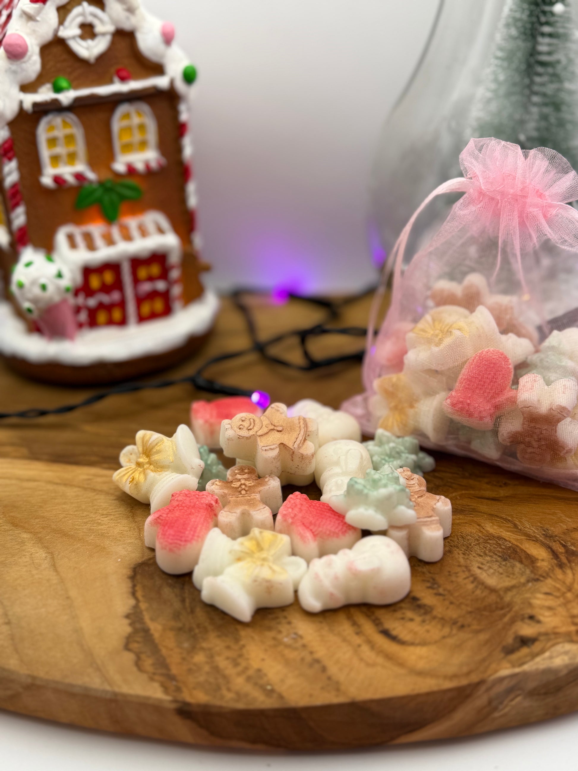 Le modèle Fuyumix est un sachet composé de mini-fondants parfumés qui capture l’esprit chaleureux des fêtes, avec ses sujets de Noël.