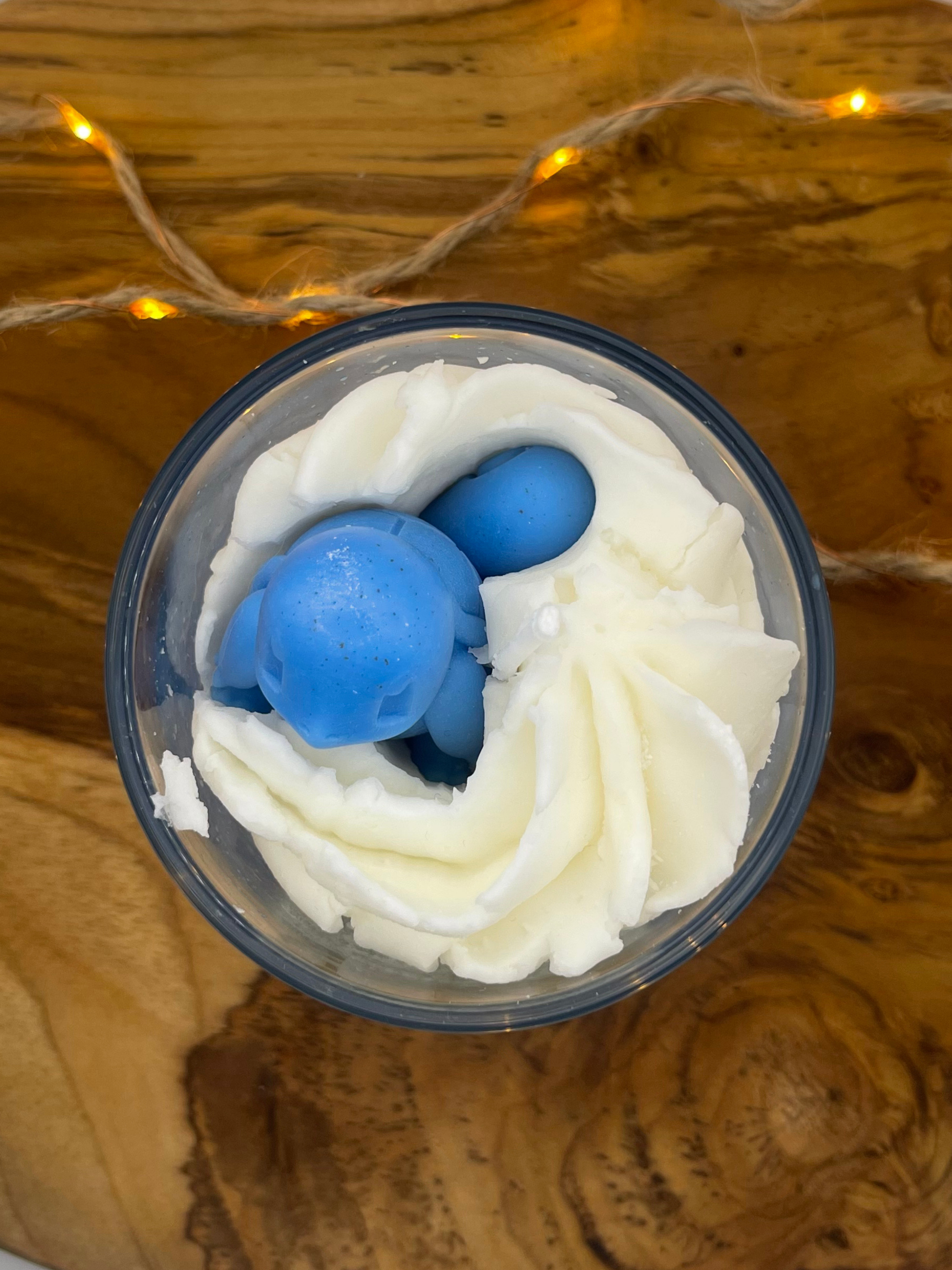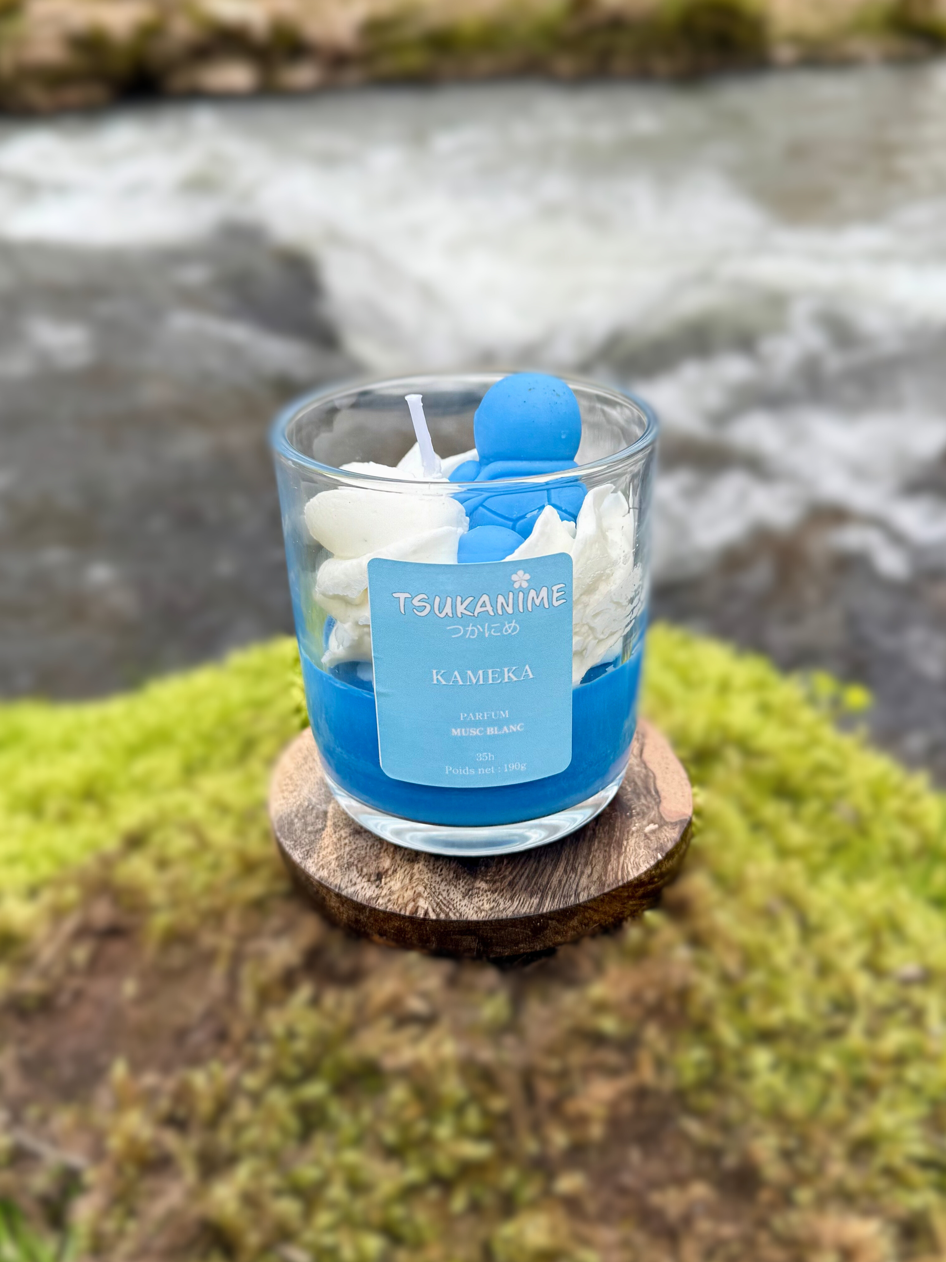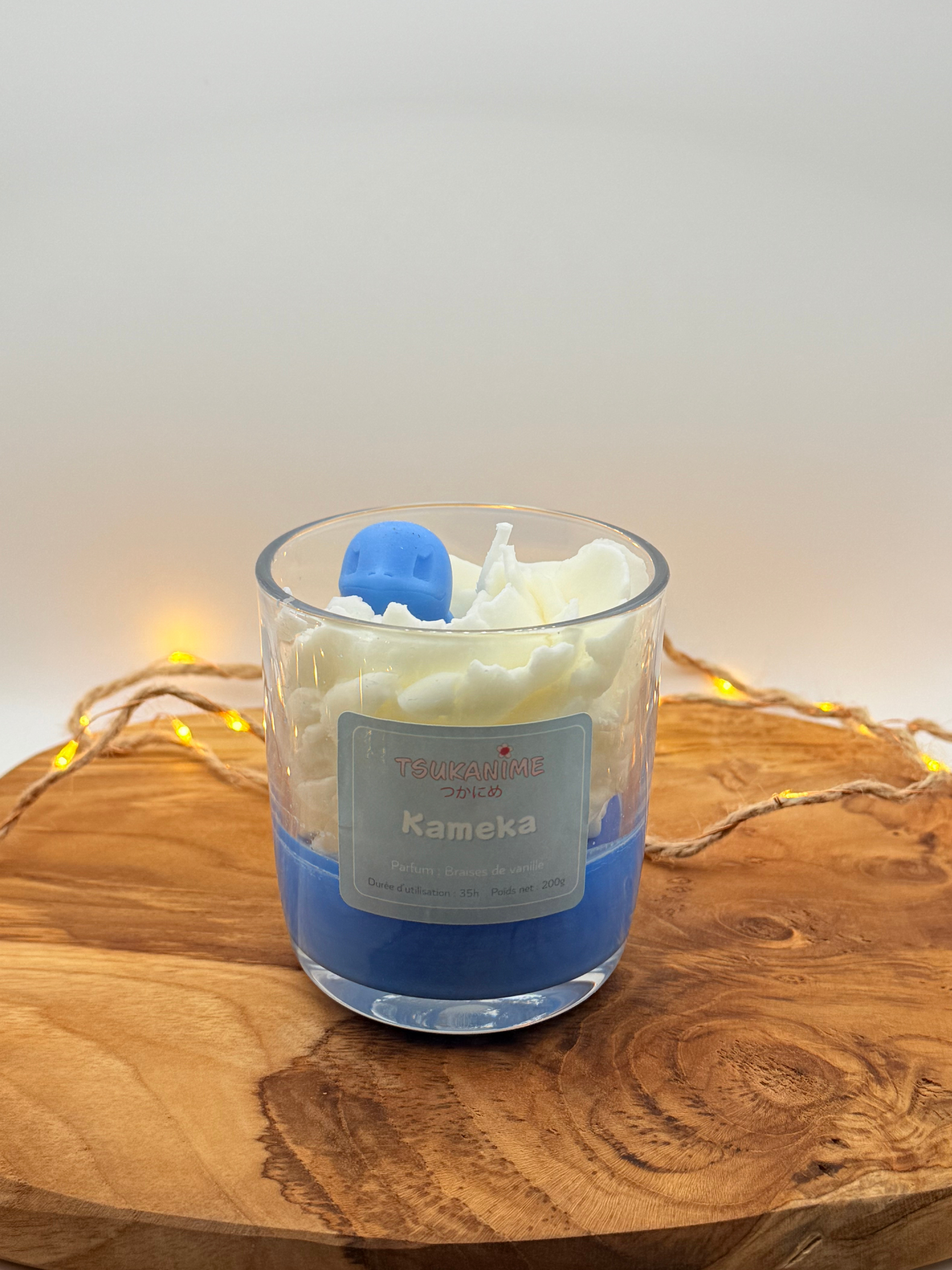 Le modèle Kameka est une bougie artisanale inspirée de Carapuce, le starter Eau emblématique de la première génération Pokémon.