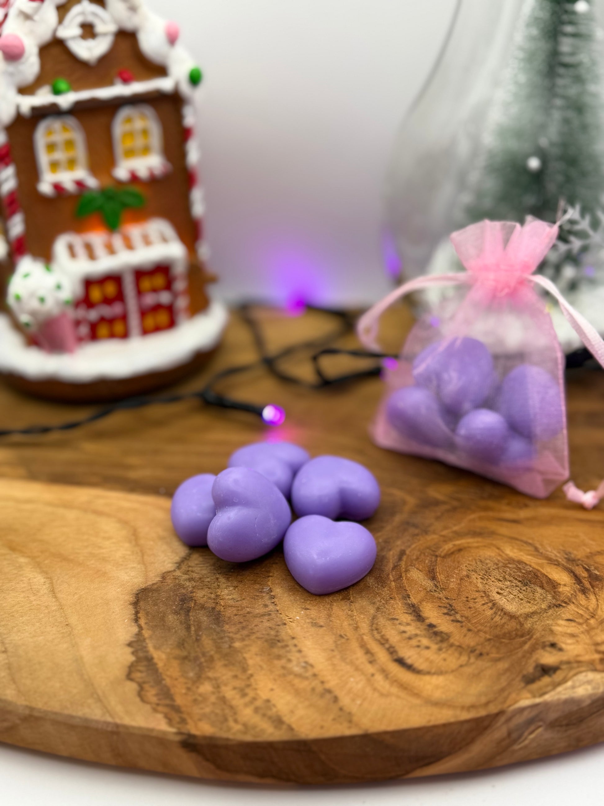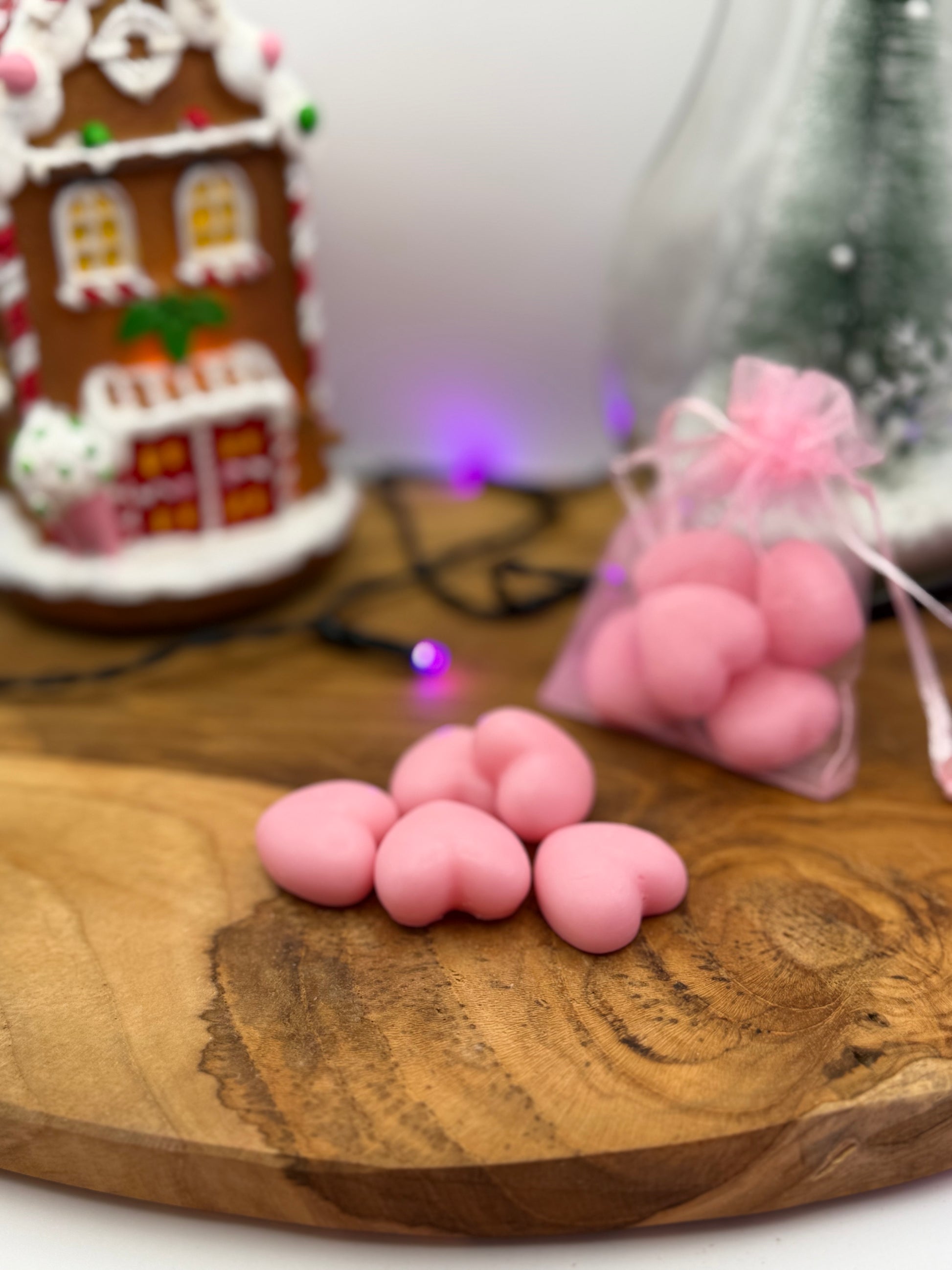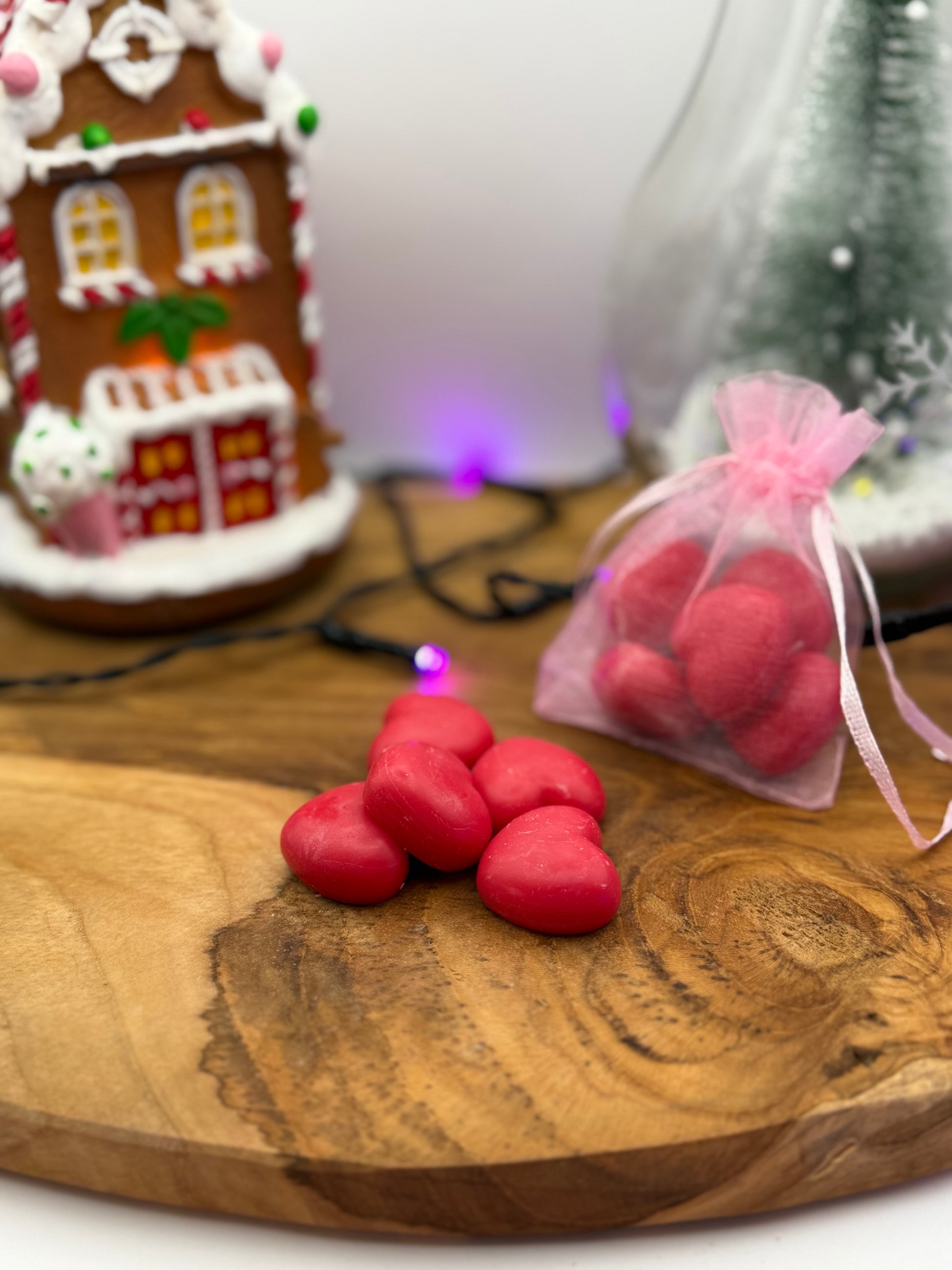 Le modèle Kokoromini est un sachet composé de mini-fondants parfumés qui capture l’esprit chaleureux des fêtes, avec ses coeurs colorés.