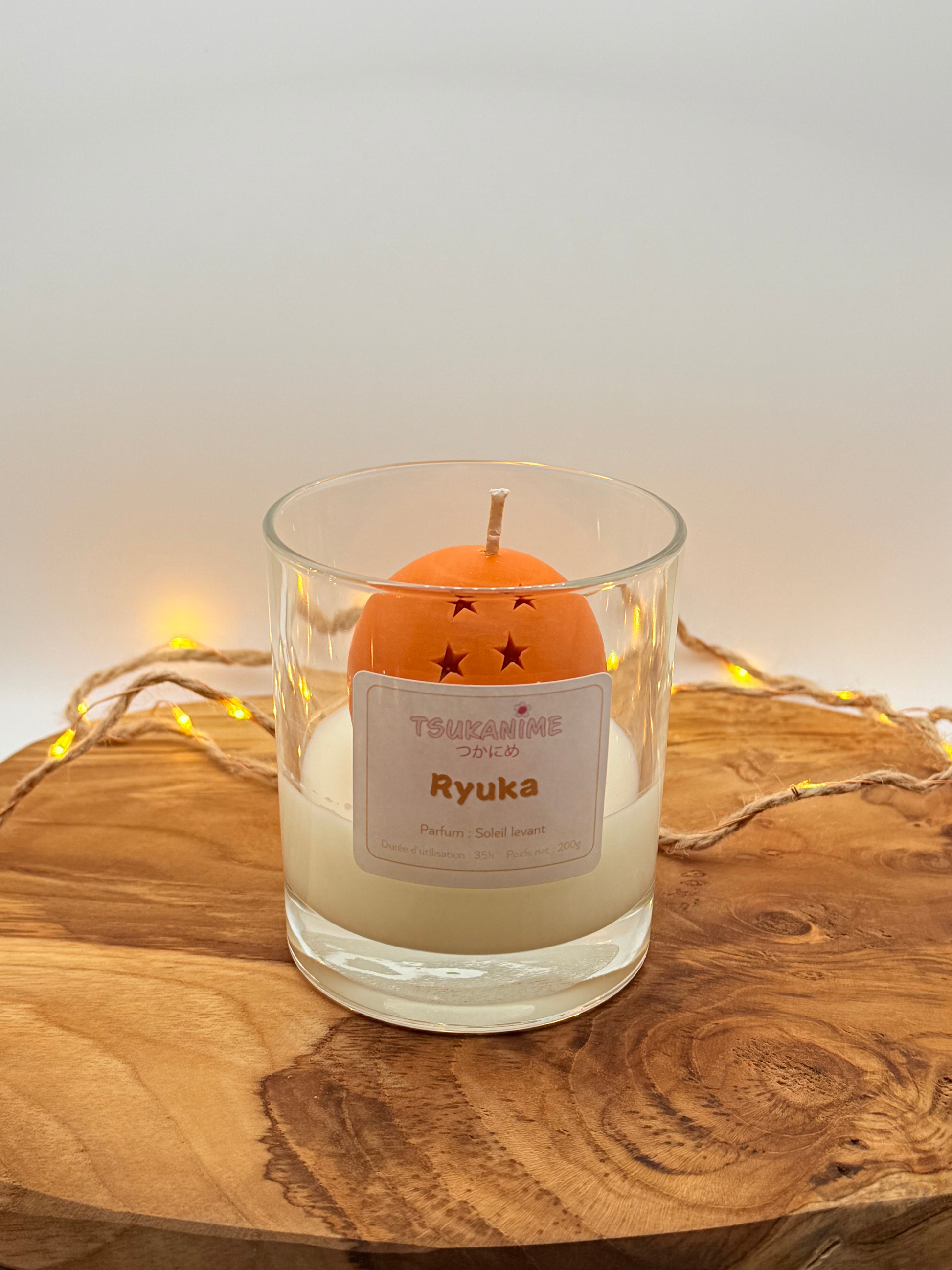 Le modèle Ryuka est une bougie artisanale inspirée de la Dragon Ball à quatre étoiles, celle que Goku a reçue de son grand-père adoptif.
